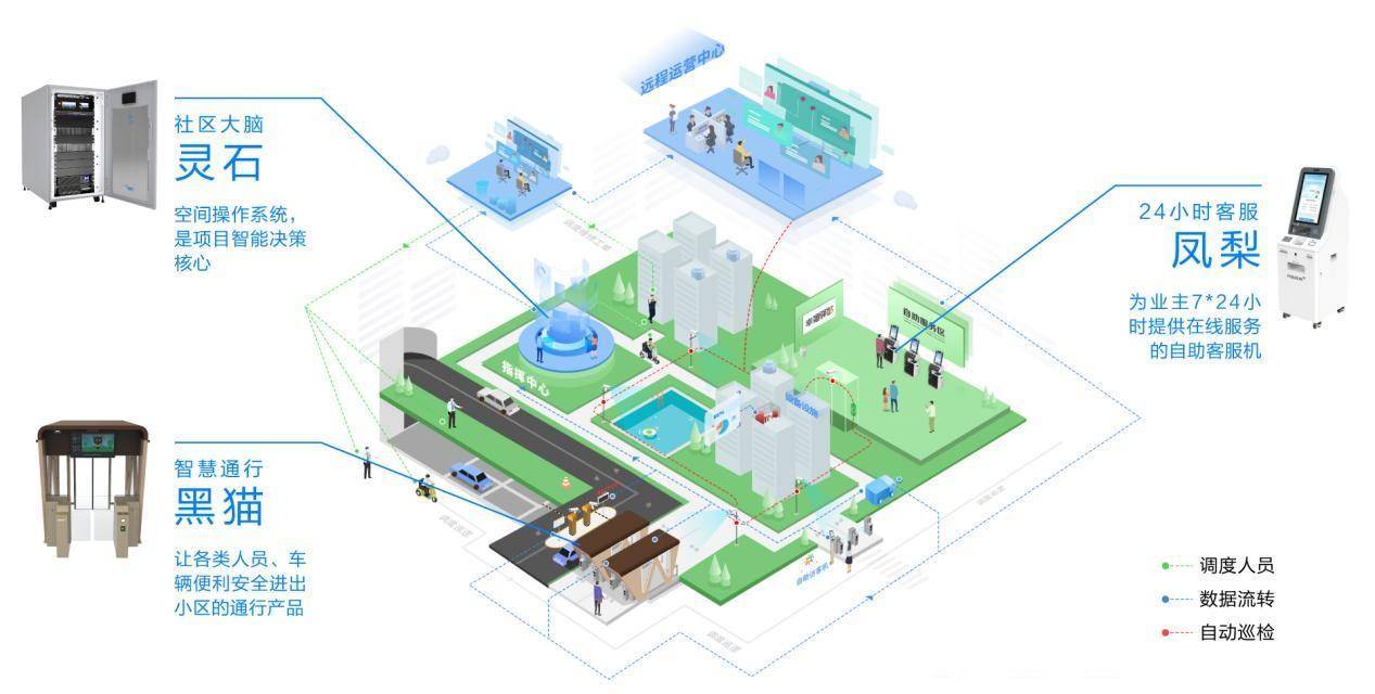 灵石相当于给社区安装了一个大脑,508项作业内容均可转换为工单,再通过“飞鸽”系统转交现场或远程员工交付。“黑猫系列”通行设备,为不同年龄段、不同需求的住户提供快速无感式通行服务。“凤梨一号”自助设备,具备装修备案、房屋过户、门禁卡申请、充值缴纳等超过20项小区内常见的业务,7*24小时解决住户的日常业务需求。